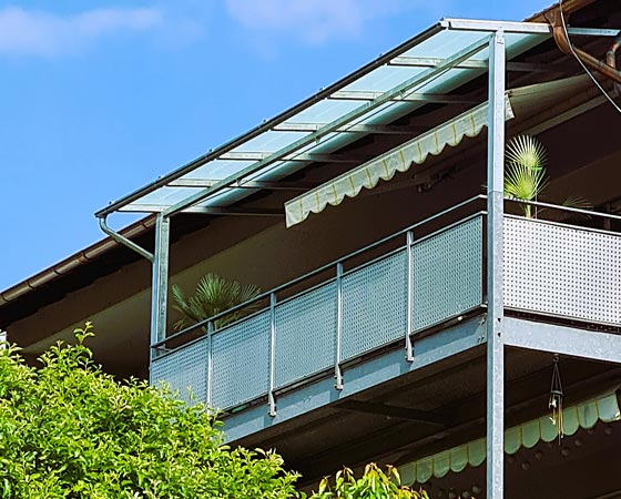 Balkonüberdachung aus Stahl schaffen Sie zusätzlichen Schutz vor Wind, Regen und Sonne und erhöhen so den Nutzungskomfort Ihres Außenbereichs erheblich. Unsere Überdachungen sind wetterbeständig, pflegeleicht und lassen sich harmonisch in die bestehende Architektur integrieren. Ob als transparente Glaslösung oder mit wetterfesten Abdeckungen – wir bieten maßgeschneiderte Lösungen, die Ihren Balkon zu einem ganzjährigen Wohlfühlort machen und gleichzeitig den Wert Ihrer Immobilie steigern. Hier finden Sie weitere Informationen zu unseren Überdachungen.